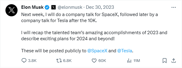 马斯克:下周,TSLA 最终将找到一种方式,我将回首天才团队正在 2023 年取得的惊人成绩,报248.48元,